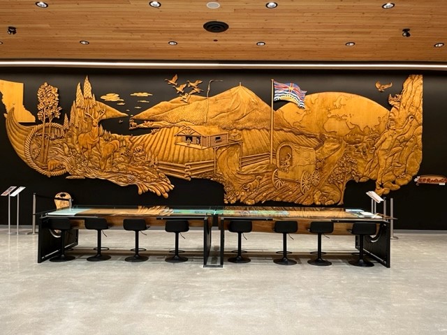 The Vanderhoof Tourism and Cultural Centre is conveniently located at the museum grounds along Highway 16, with large trailer parking available behind the site. The Vanderhoof Tourism and Cultural Centre features a 12-metre long, 3-metre tall wooden carving by master carver Peter Rodseth, as well as historical exhibits from around the Nechako Valley, including some from Saik’uz First Nation and surrounding First Nations. Come in and get some information and maps about Vanderhoof and our surrounding areas, or check out some regional art and locally-made crafts and gifts.
